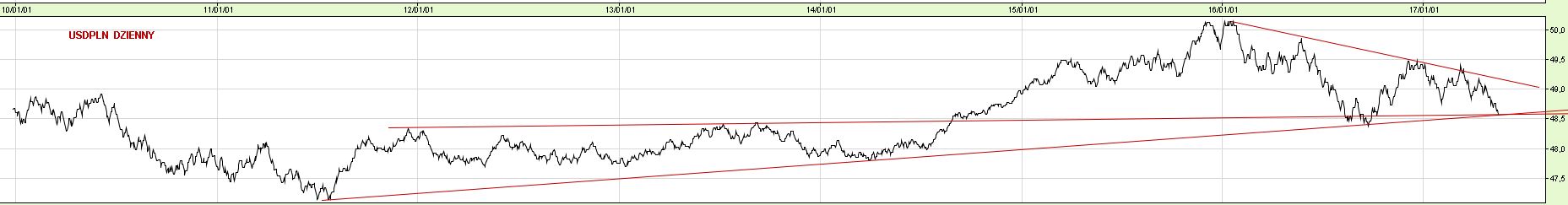 Wykres USDPLN też doszedł do punktu decyzyjnego w średnioterminowym interwale: