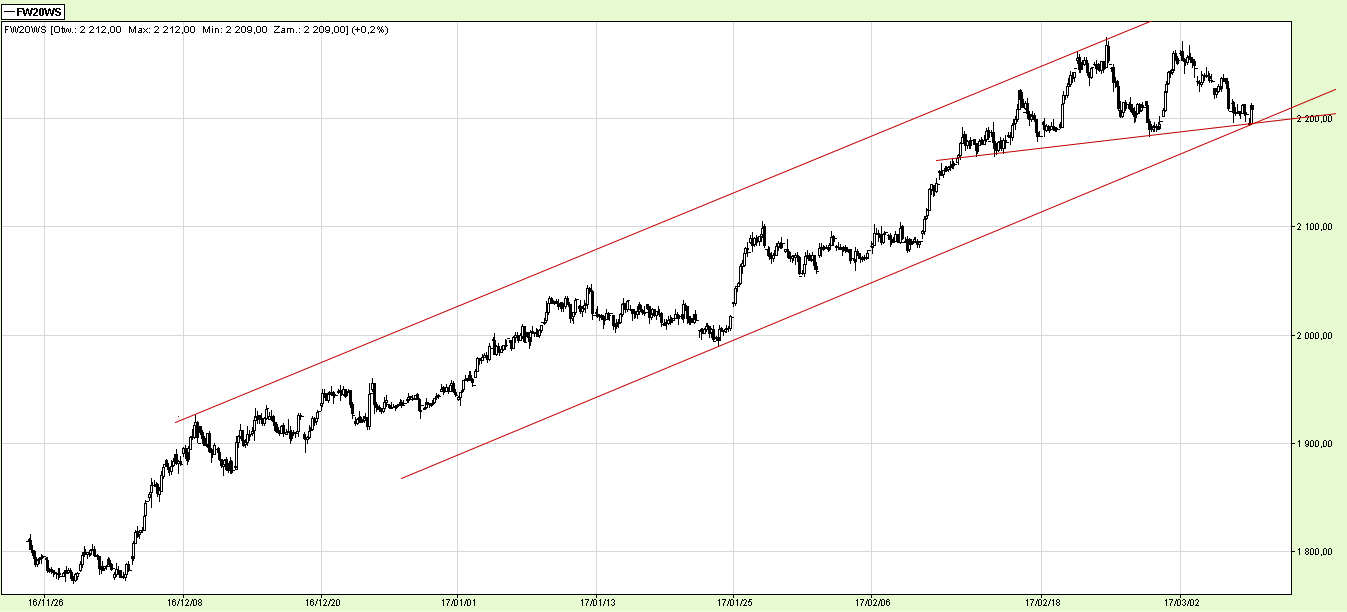 Kontrakty po odbiciu od dolnej bandy trendu wzrostowego: