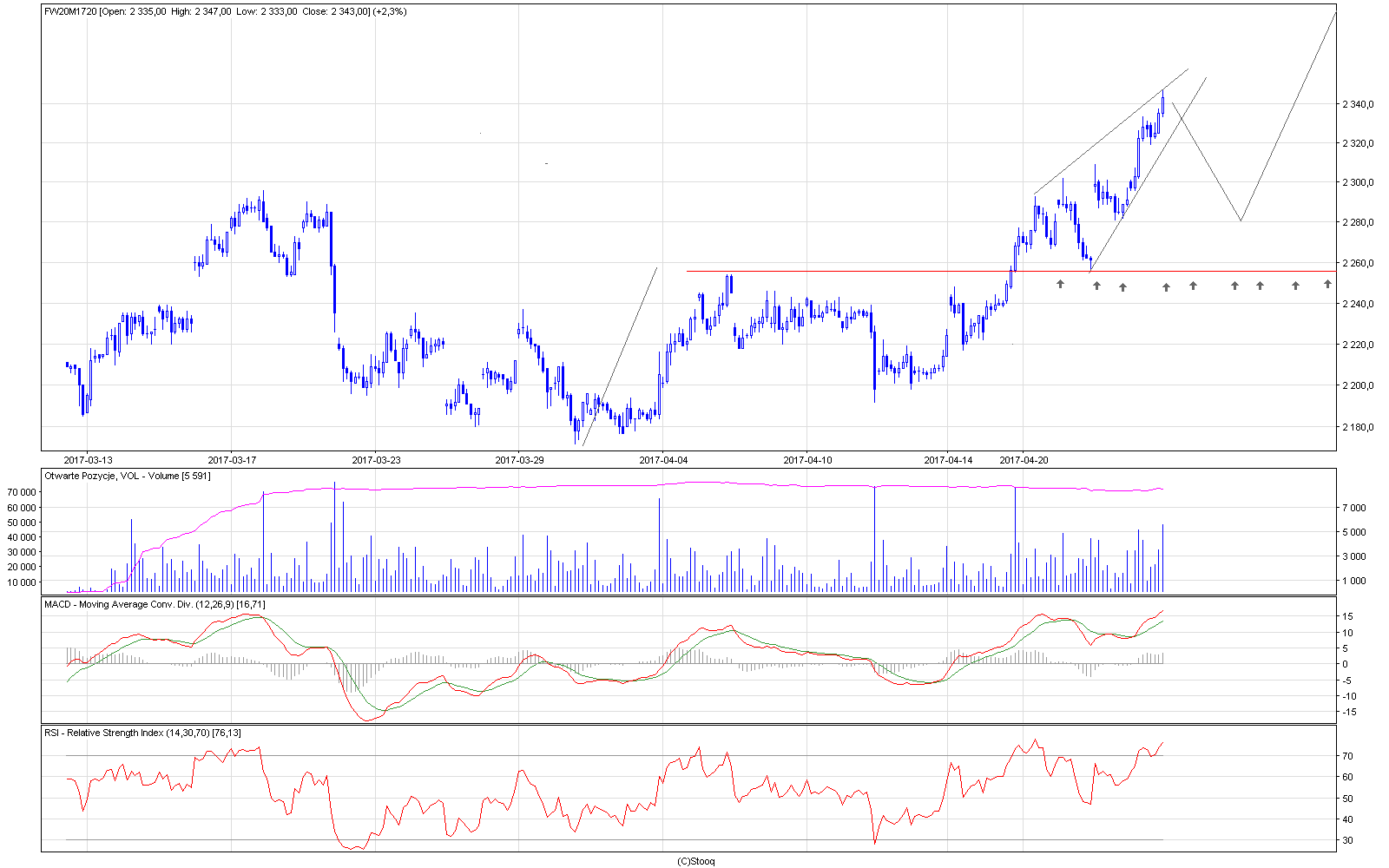 Uważałbym w okolicach obecnych poziomów. Na razie nic nie wskazuje na koniec wzrostów i coś można jeszcze intra dokręcić ale poniżej 2319 es na okoliczność 4.