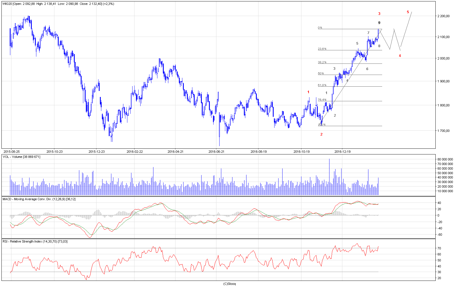 Po wyjściu na nowe maxy na koniec tygodnia pojawia się pytanie w kategoriach łapania szczytu: czy ok 2150 to wszystko w obecnej fali wzrostowej i tera bezzza ? (tzn duża, rozlazła 4 przed kolejnym upem). Na wykresie instrument bazowy w interwale day.