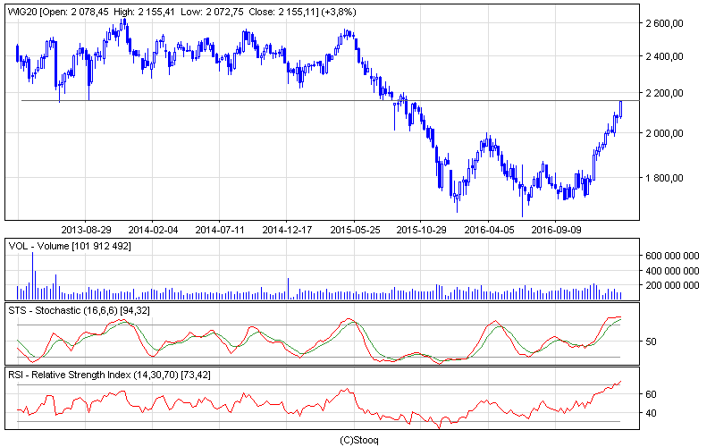 12 grudnia 2016 był start z poziomu 1879 i 2162 stanowi 423,6%.