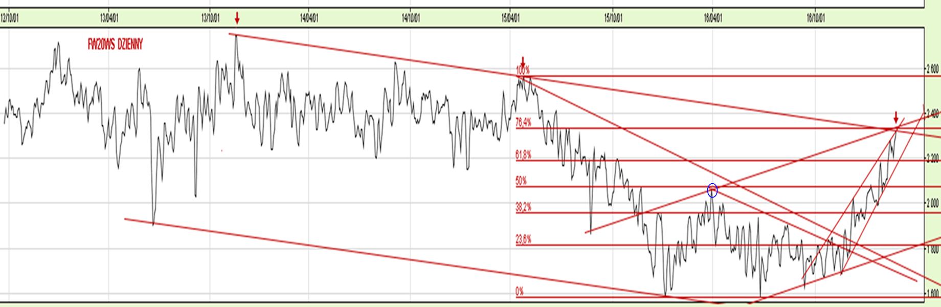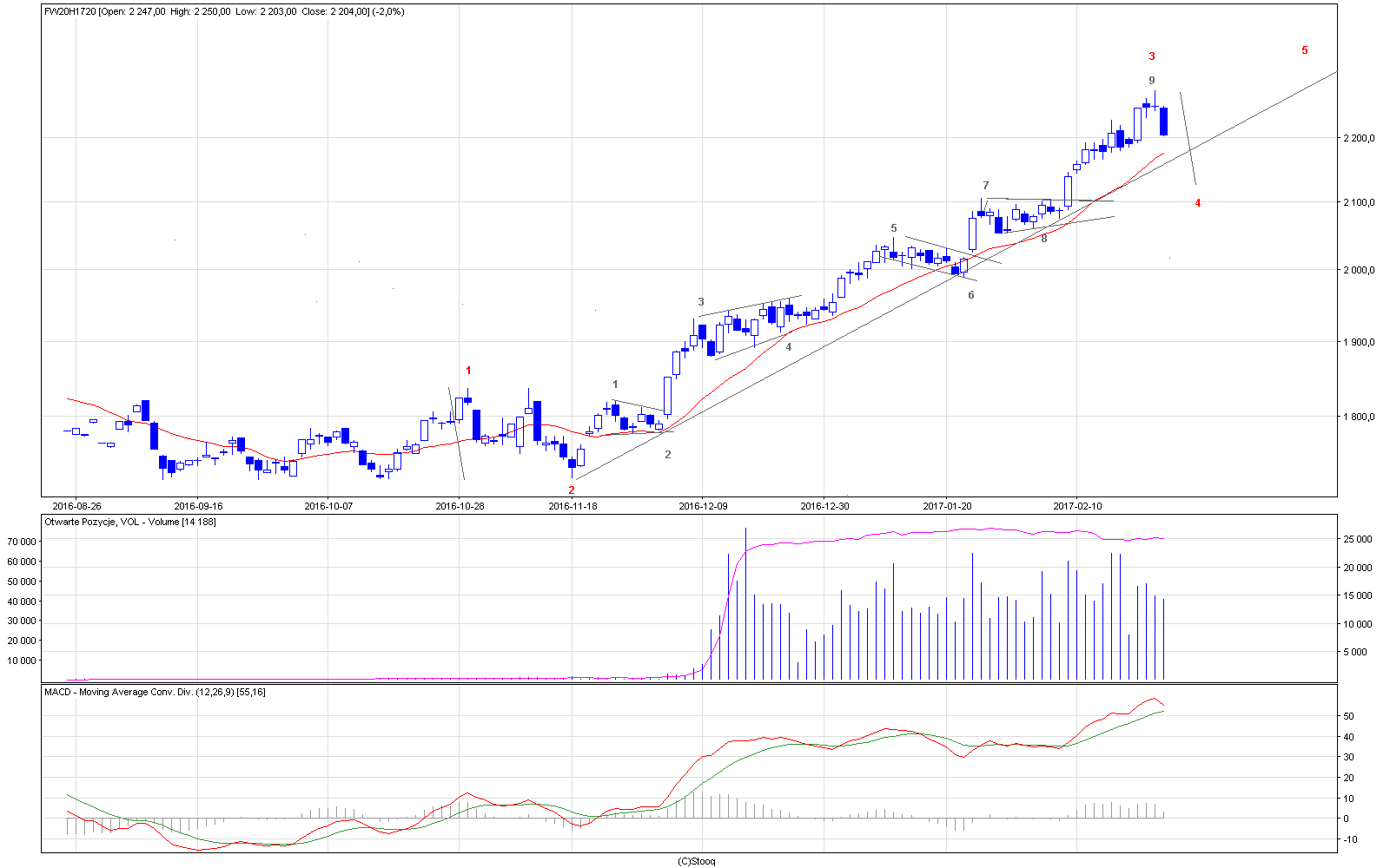 Dzisiaj pokażę rysunek kontraktów na dziennym, gdzie próbuję "złapać" górkę przed większą korektą - jak widać przesłanki są poważne - tylko czy rynek będzie to respektował?