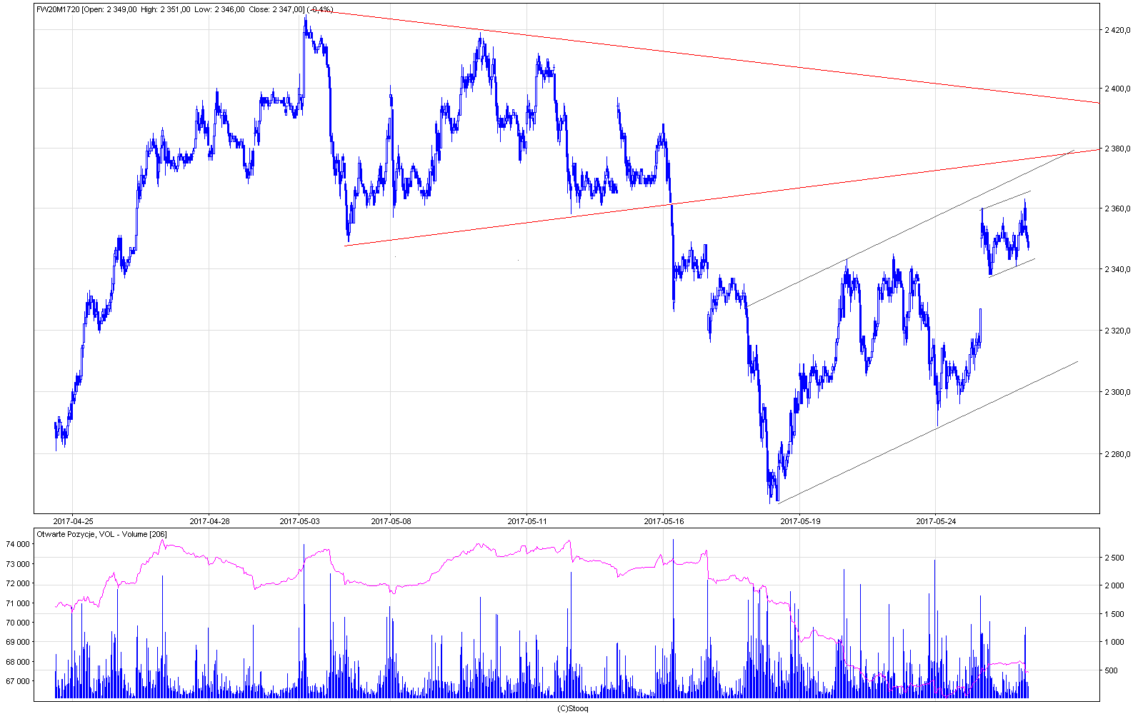 Jak widać na wykresie kreski u góry robią za najszybsze oporniki, luka na dole za najszybsze wsparcie. Wybicie powinno pokazać kierunek ruchu z obecnej konsoli.