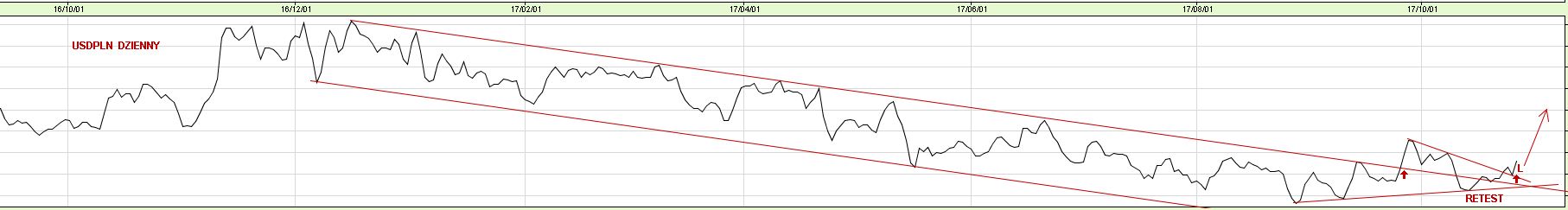 Złotówka do osłabienia - po wybiciu z kanału i reteście tego wybicia jest sygnał L: