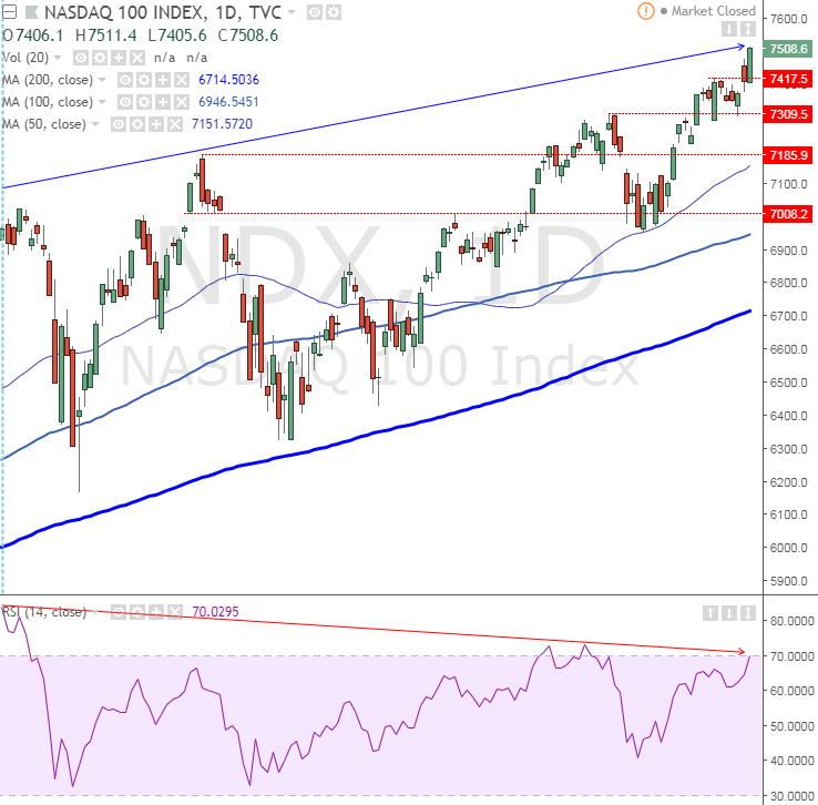 Tymczasem dla fanów rynków US proponuję rzut oka na dywergencje jakie tam widać gołym okiem na wykresach , po sesji mocno spada FB pociągając za sobą cały sektor FAANG , dziś po sesji wyniki poda AMZN , to może być decydujący tydzień.