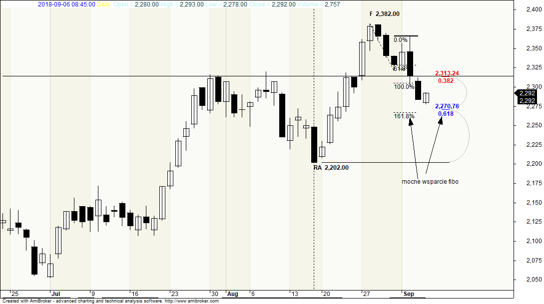 argentarius napisał(a):Mamy mocne wsparcie fibo na 2271-2267. Nie musi tam dojść, ale jeśli tam dojdzie to spodziewam się przynajmniej jakiegoś odbicia do góry. Mój stoploss dla pozycji długich pod tym wsparciem.