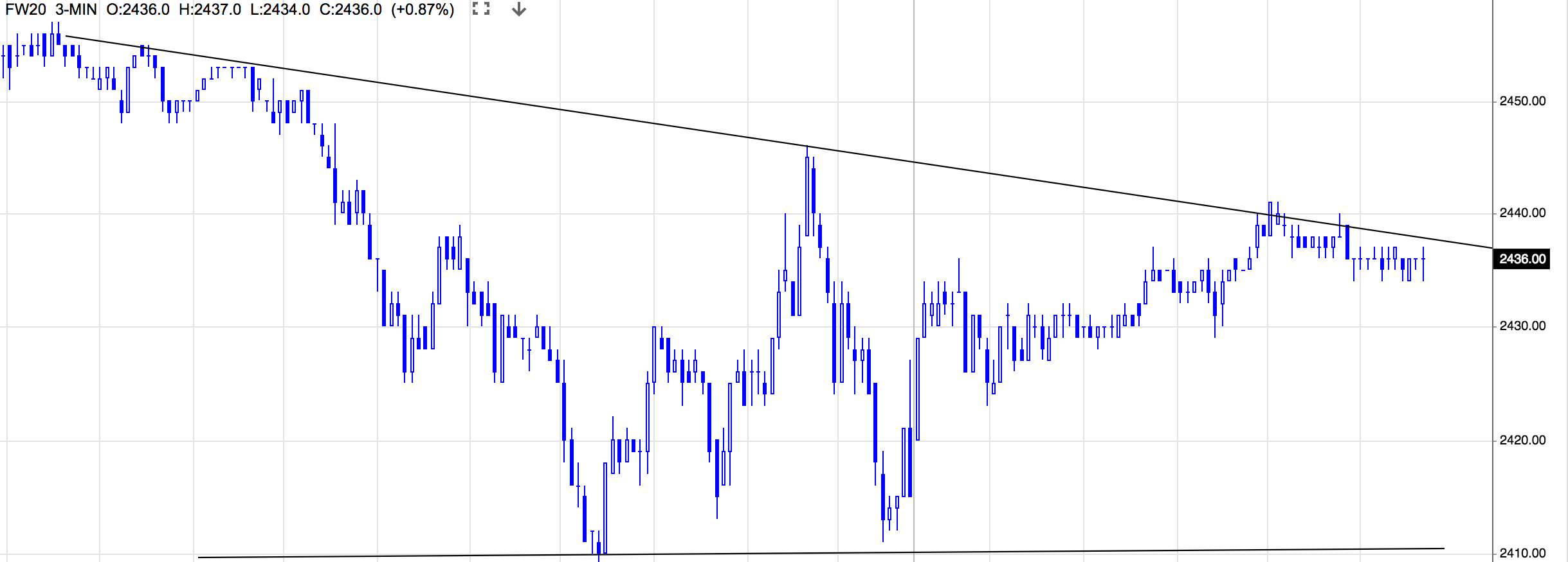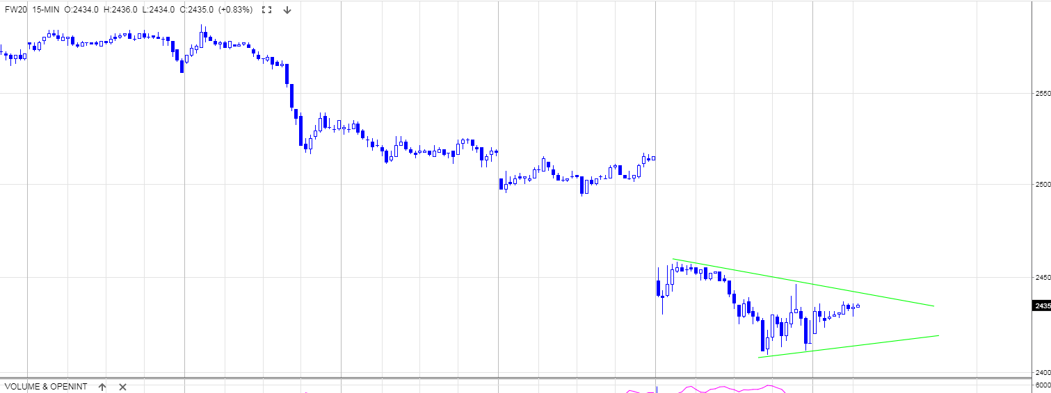 Na intraday widać, jak kurs porusza się od bandy do bandy w kanale "lekko" spadkowym (z powodu silnej "niestety" korelacji do rynku niemieckiego DAX).