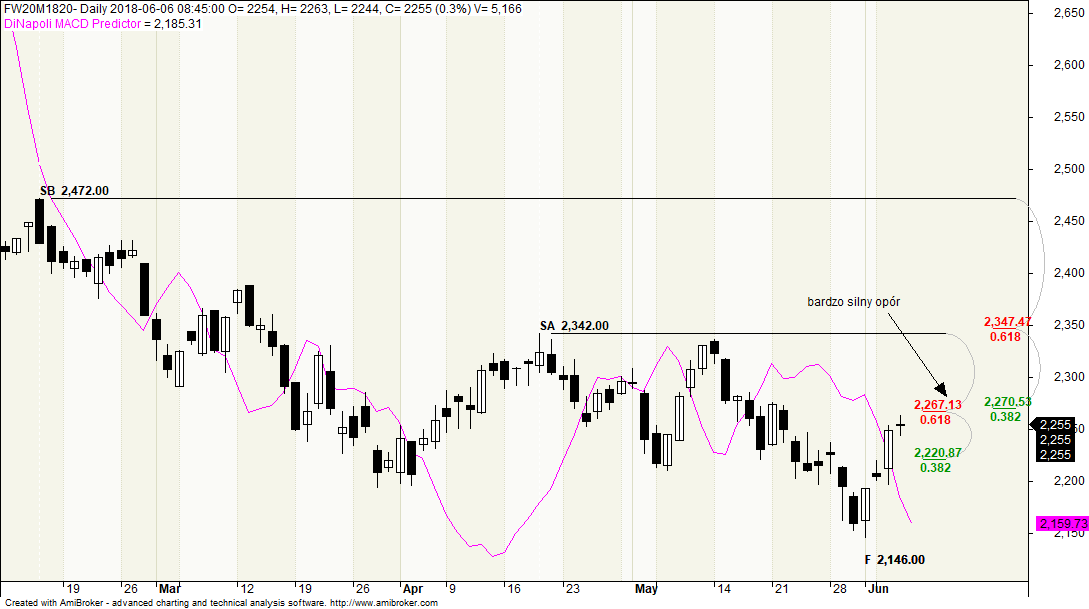 Z drugiej strony mamy bardzo silny opór na 2267-2271 tzw zgęszczenie. Niewiele nam brakuje do dojścia, ale nie zdziwiłbym się gdyby tam nie doszło.