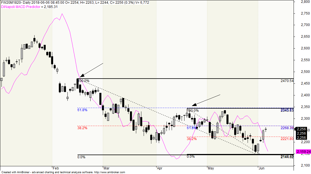 argentarius wg moich odczytów wskazywane przez Ciebie zgrupowanie 23,6 i 61,8% jest nieco na niższym poziomie 2262-2264 - dziś kurs dwukrotnie testował ten poziom i nadal jest w pobliżu.