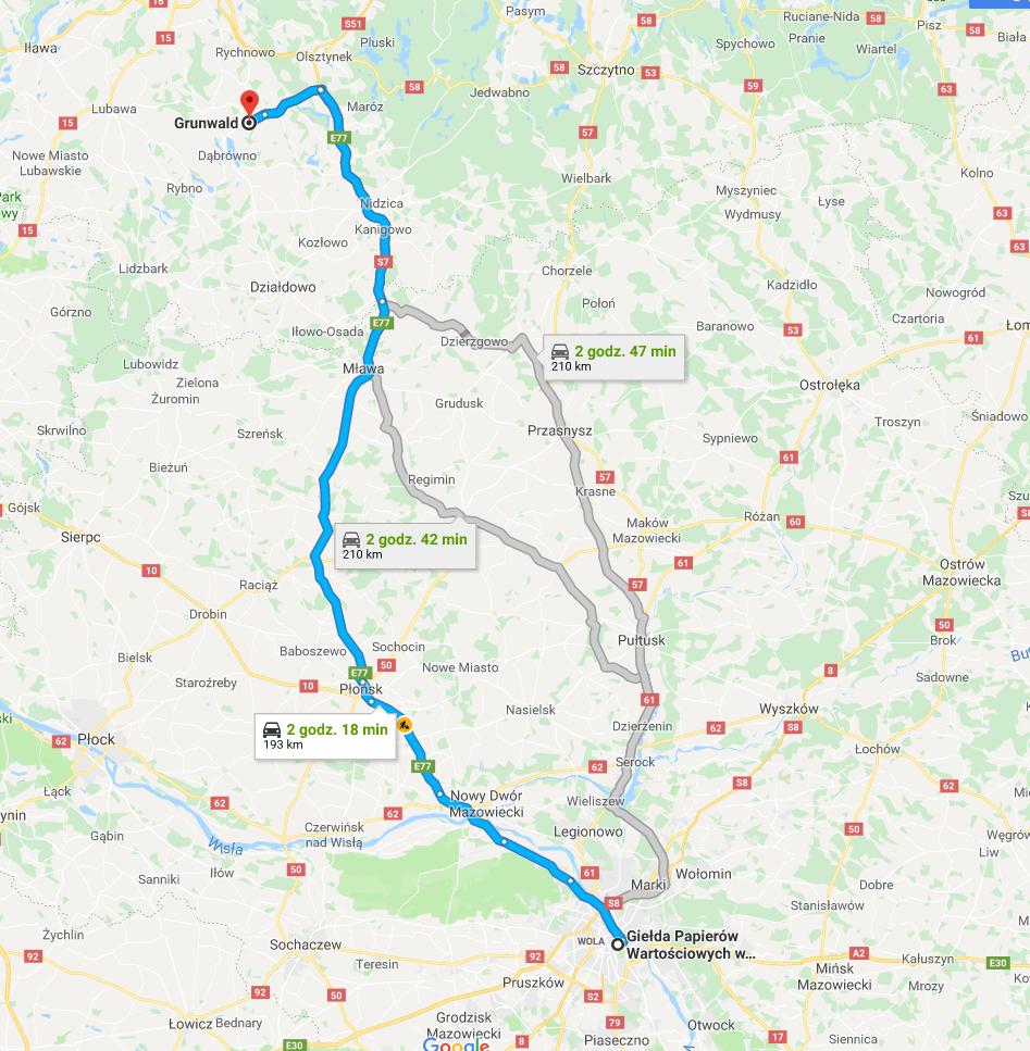 Nie wiem czy masz świadomość, że Grunwald znajduje się całe 193 km od książecej 4.... ale na północ ;)