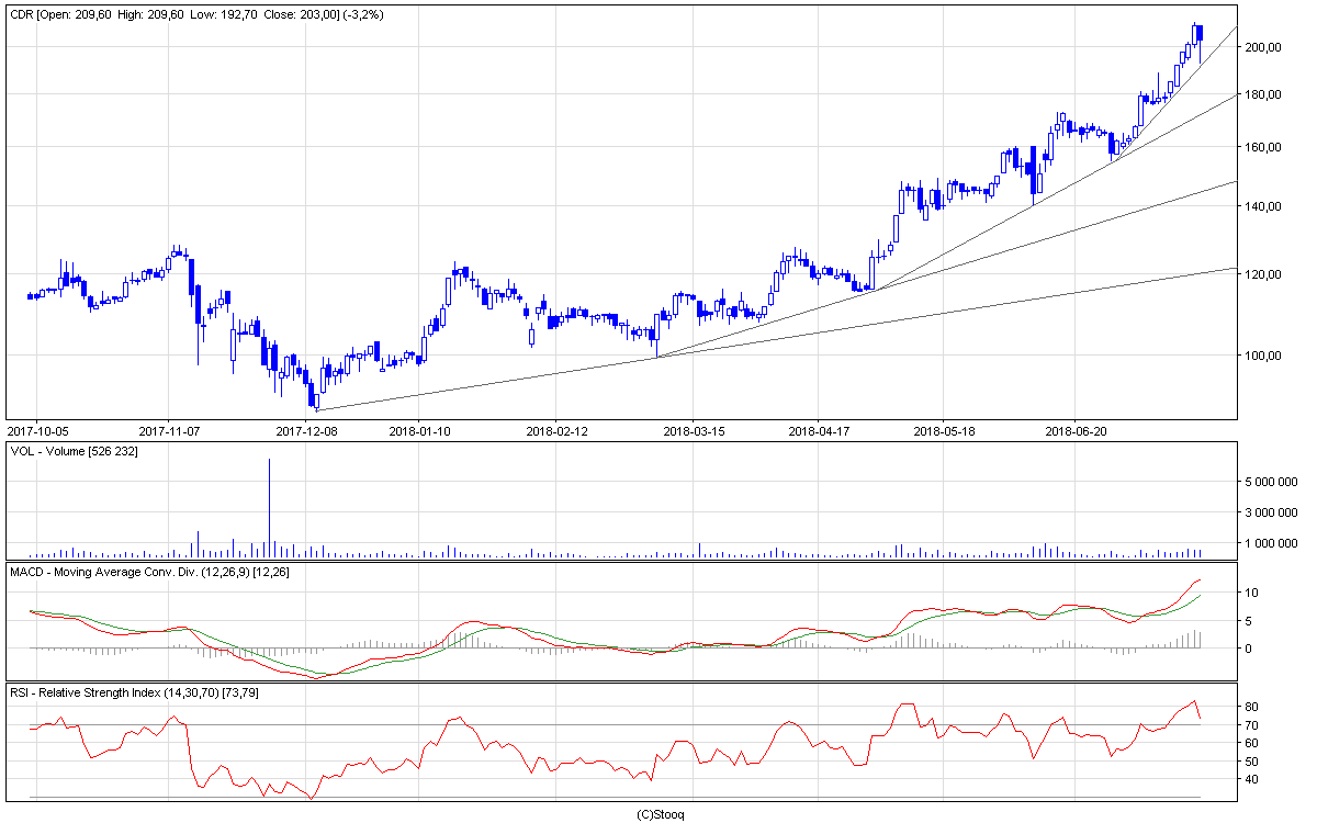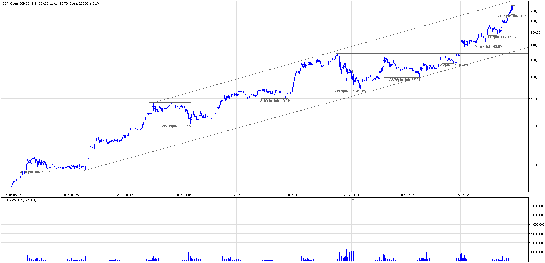zanim jednak wszyscy rzucą się gremialnie szorcić CDR ( gdzie dzienny obrót futa to kilkaset szt , LOP poniżej 1200szt a DEPO większe od FW - sic! ) proponuję spojrzeć na wykres spółki pod kątem korekt:
