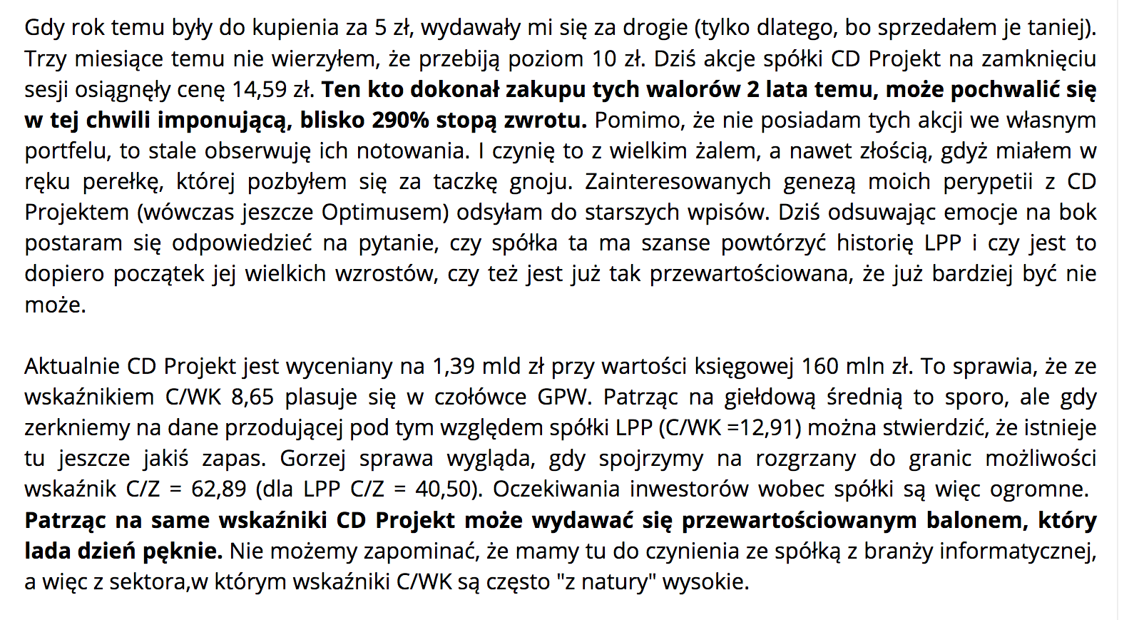 Dla jasności: nie posiadałem spółki / nie posiadam i nie zamierzam posiadać - i jest mi obojętne w którą stronę podąży kurs 8-) ale coś mi mówi że zobaczymy jeszcze poziomy 229/230pln , a może i wyżej.