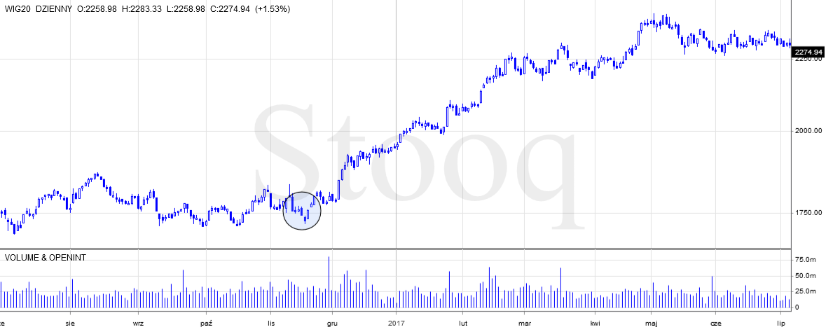 hossafan napisał(a):No też sądzę, że to ostatnia szansa żeby zatrzymać większe spadki. A jeśli chodzi o zmiany lukami to różnie bywa. Np. sesja z 21.11.2016 zapoczątkowała cały trend wzrostowy.