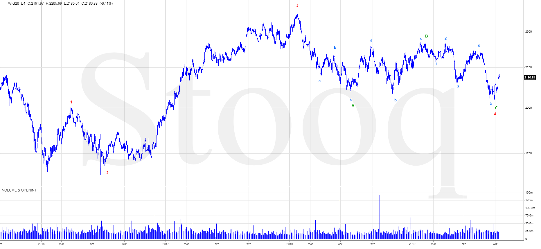 - na wig20 fala 2 schodzi cieniem poniżej dołka fali 1 (na wig i na fw20 to nie występuje)