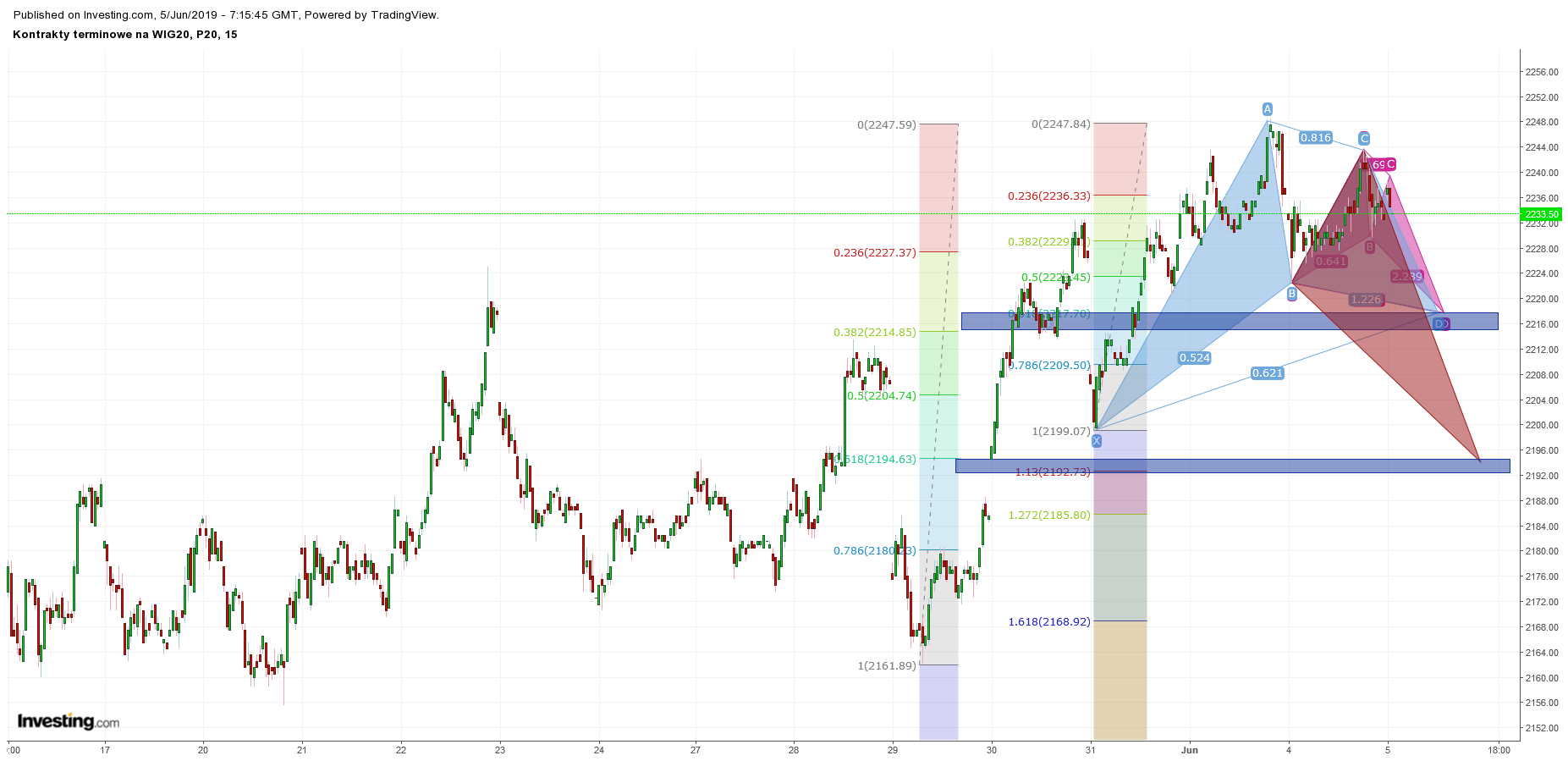 Wygląda to na trójkąt od wczorajszego szczytu. Od dna z 29.05 mogłaby byc to 4 na Wig20, bo na fw nie pasuje.