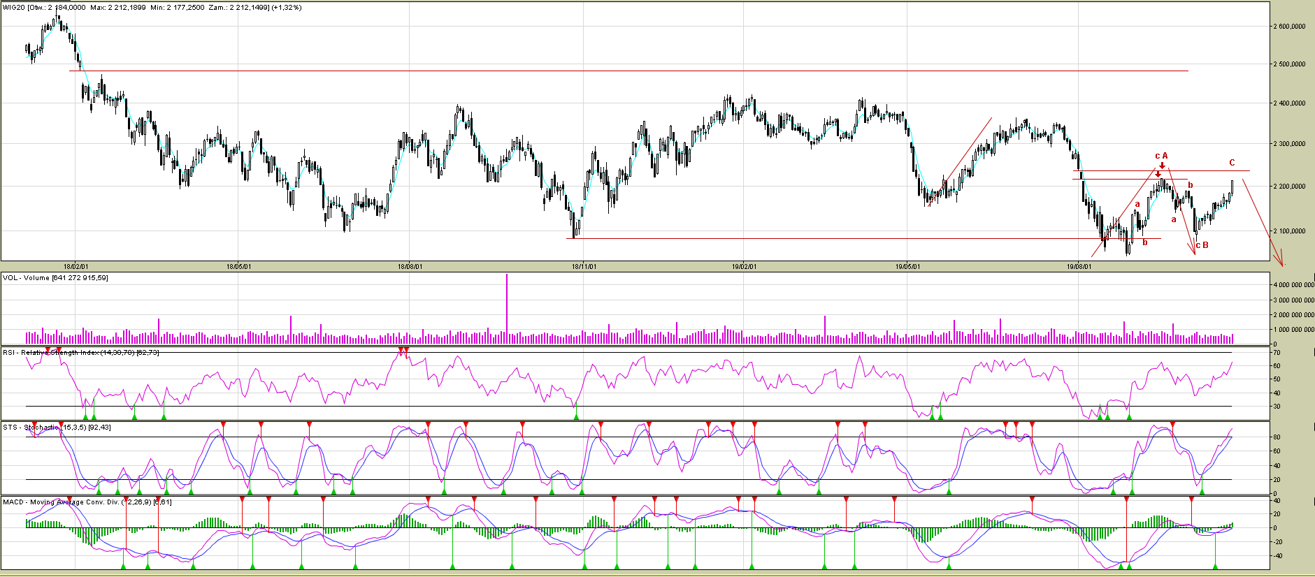 dopiero później korekta abc ruchu 2155/2230 po korekcie kolejna piątka mogłaby sięgnać 2265 znowu korekta abc i kolejna 5-ka na 2333 wróżenie jak irtek mówi niewiele daje bo guzik a nie wpływ mamy na rozgrywającego