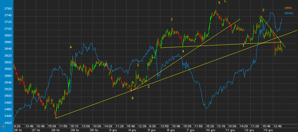 Zgodnie z nią robimy korekcyjnego zygzaka i powinniśmy wymalować jeszcze jedną falkę w dół. Powinniśmy zatem zejść w okolice 3611 na W20 (z równości fal)