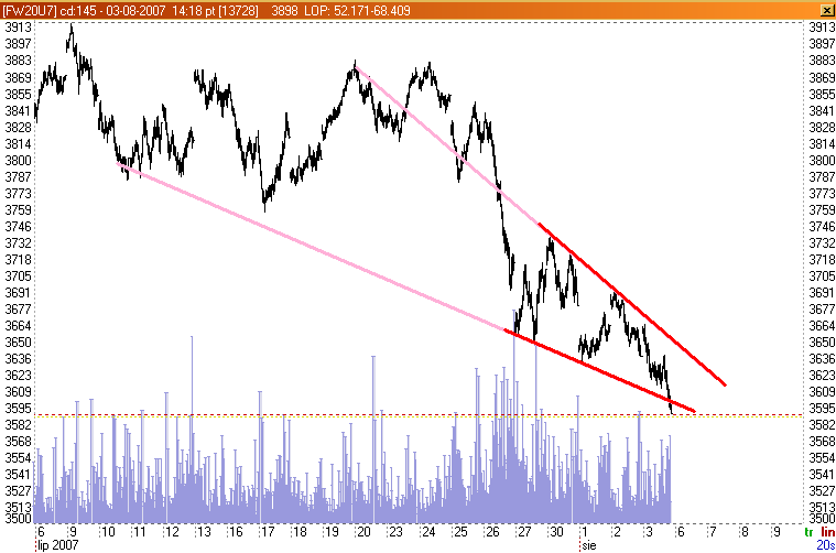 Zauwa?y?em ciekaw? sprawŕ - mimo i? moje nastawienie do rynku jest nied?wiedzie od pewnego czasu gram w trendzie spadkowym na L. Trzeba przyznaŠ ?e powody by?y (a mo?e nawet wci?? s?) pi?tka, klin wyprzedanie rynku itd.. Mimo wszystko mam pewne w?tpliwoÂci co do trwa?oÂci odwrˇcenia trendu. Przyczyn? jest to i? spadki s? zbyt gwa?towne!