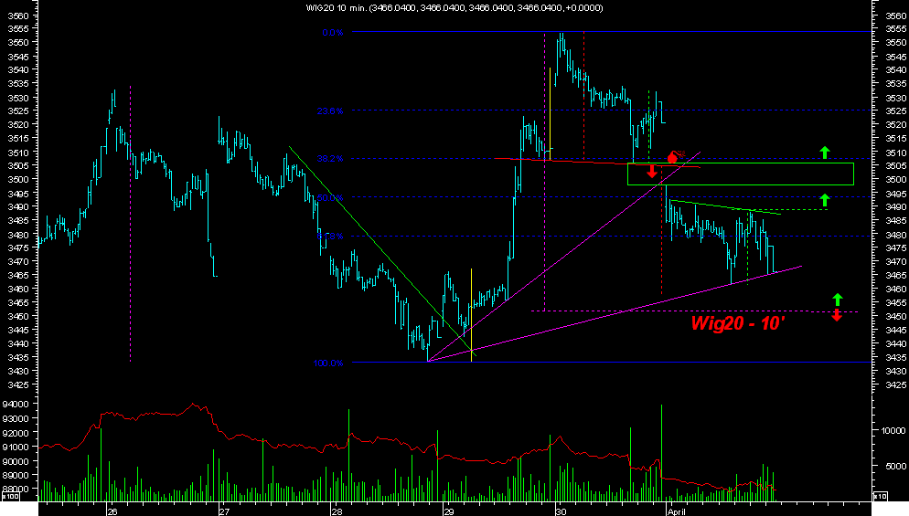 narysowana wczoraj na wykresie indeksu (na stronie g?ˇwnej) bomba dzi odpali?a. Srednioterminowo dzisiejsza sesja nic na razie nie zmieni?a, natomiast do oceny krˇtkoterminowej za??czam wykres.