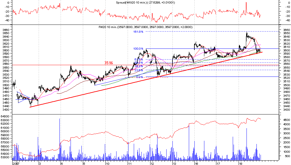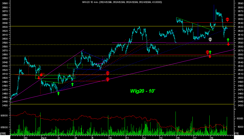 Dzisiaj po raz kolejny pad? rekord na indeksie W20. Pomog?a w tym niew?tpliwie UEFA, ale pobyt na szczycie trwa? krˇtko. Ju? drugi tydzie˝ przebywamy nad poziomem 3550. Obroty na spˇ?kach z wig20 w tym czasie nieco wzros?y. Przewa?aj? czarne Âwiece i trochŕ wygl?da to na ostro?n? dystrybucjŕ.