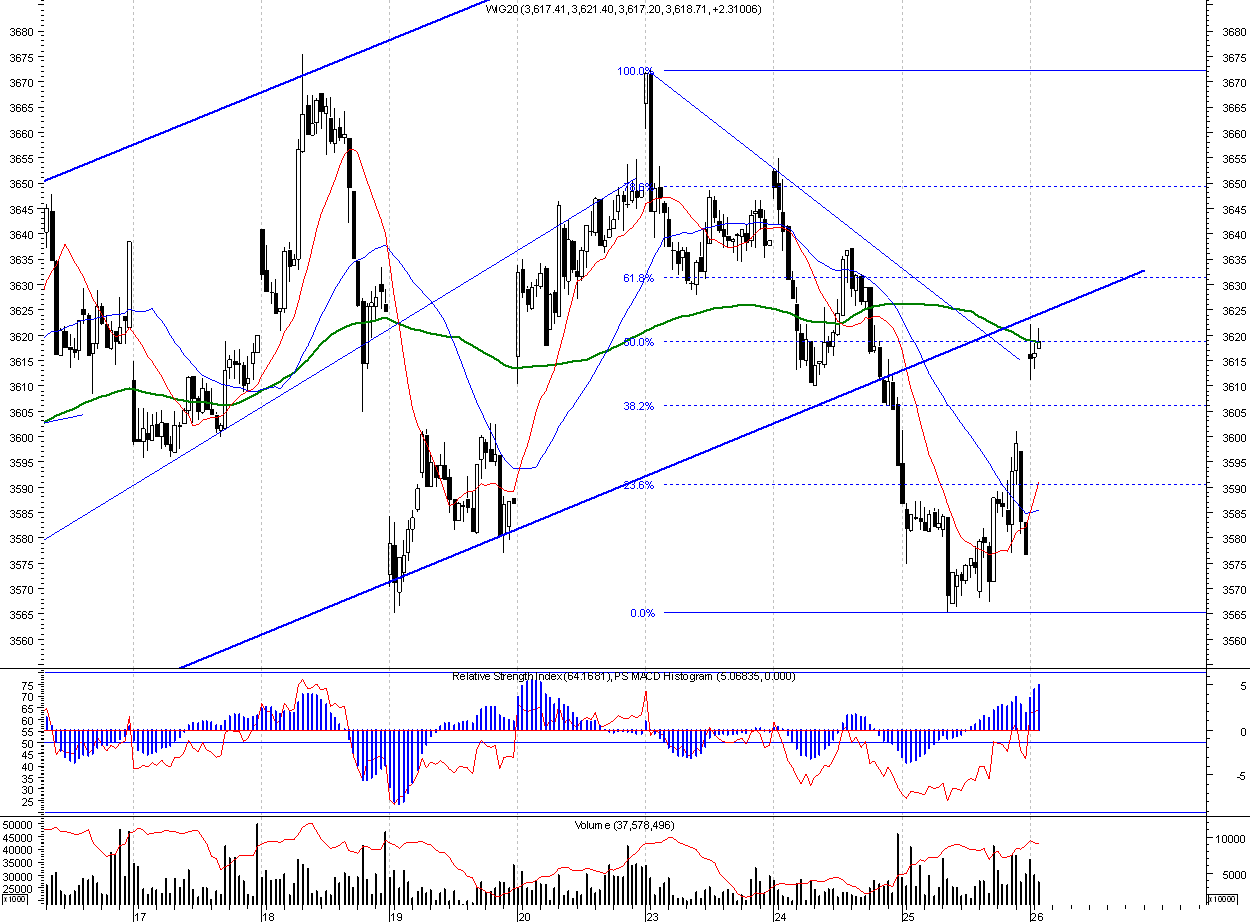 WyjÂcie z kana?u do?em sta?o siŕ faktem. Pierwsza linia obrony zosta?a utrzymana i mo?liwy jest jeszcze powrˇt na szczyt, ale spadek przy obrocie ponad 1,1 mld przy tak dobrych nastrojach na Âwiecie jest bardzo powa?nym ostrze?eniem dla inwestycji w Ârednim terminie.