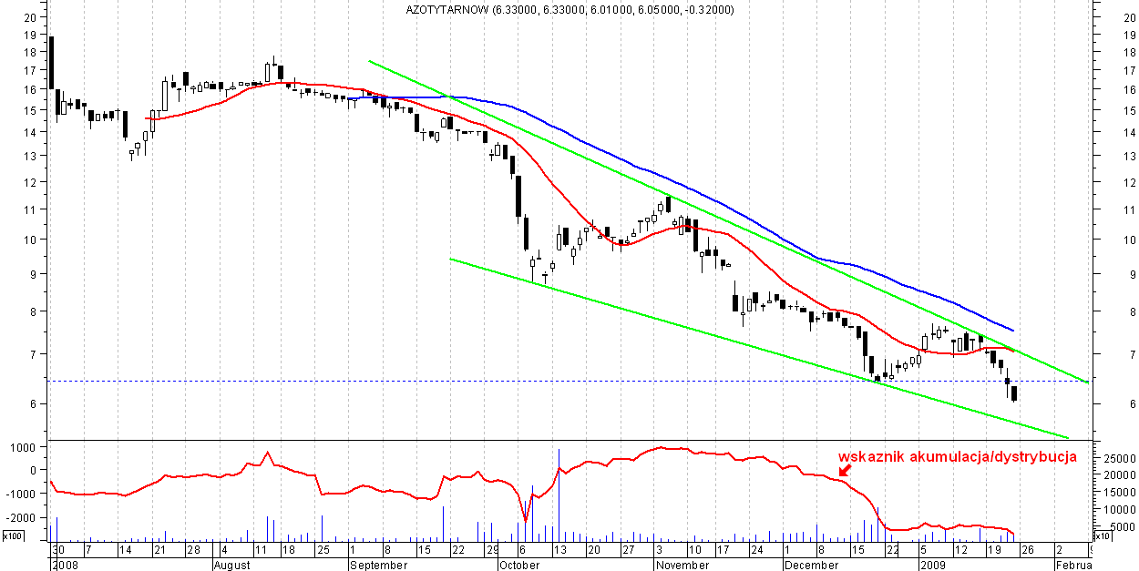 Najbardziej istotny w analizie Azotów wydaje się sam ... wykres. Jeżeli kurs dobrze (?) fundamentalnie wyglądającej i rokującej firmy spada i robi nowe minima, to świadczy to o tym, że akcje sprzedają insiderzy a sama spółka wyciągnie zaraz jakiegoś "trupa z szafy".