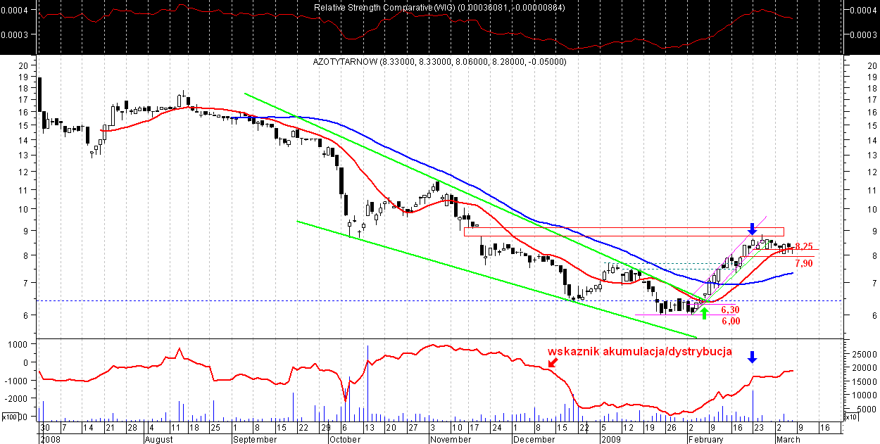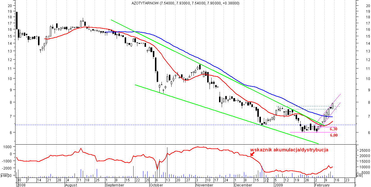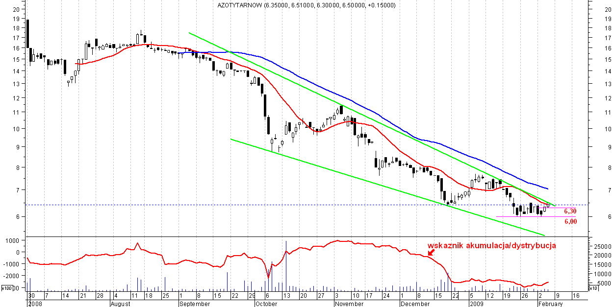 W przypadku ewentualnego kupna Azotów konieczne wydaje się moim zdaniem, poczekanie na wyrysowanie formacji lub sygnałów odwrotu. Dopiero wejście na rynek "techników" da nadzieje na jakieś wzrosty oraz umożliwi ewentualną szybką ewakuację (technicy zapewniają większą płynność) w przypadku upublicznienia skrywanych w szafach złych niusów.