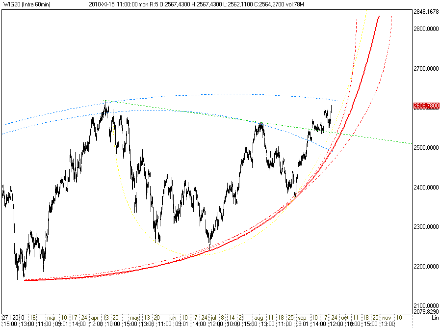 Chodzi mi o krzywą zaczepioną o te punkty jak na rysunku. Wydaje mi się, że podstawowym problemem twojej metody krzywych jest fakt, że potrzebujesz sporo punktów, aby wykreślić ją wiarygodnie (krzywa wysokiego rzędu), więc gdy już ją wykreślisz to jest trochę za późno, aby pod to grać. W każdym razie ciekaw jestem jak by to wyglądało i gdzie by wyszło ew. przecięcie z poziomem szczytu hossy z 2007, gdyby ją tak narysować.