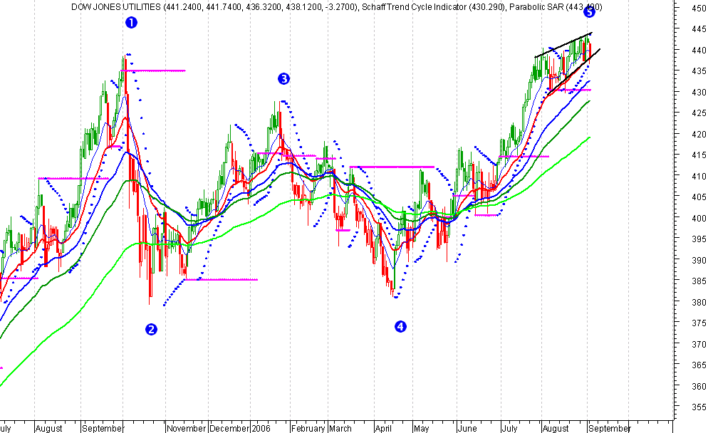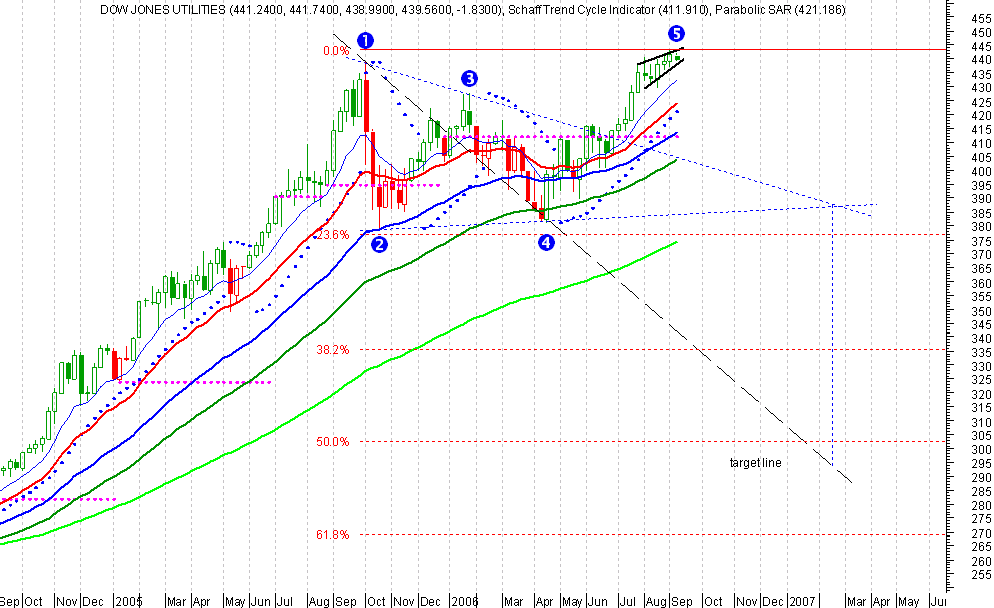 Wyczyta?em gdzies w m?drej ksi??ce ze DJU wyprzedza trendy na DJI. Jest to zwiazane z tym ze spˇ?ki publiczne s? bardziej "czu?e" na stopy procentowe. Nie wnikam dlaczego tak jest ale popatrzy?em na wykres i wygl?da na to ?e rzeczywiÂcie tak jest. Zrobi?em rˇwnie? 2 wykresy, ktˇre daj? do myÂlenia...