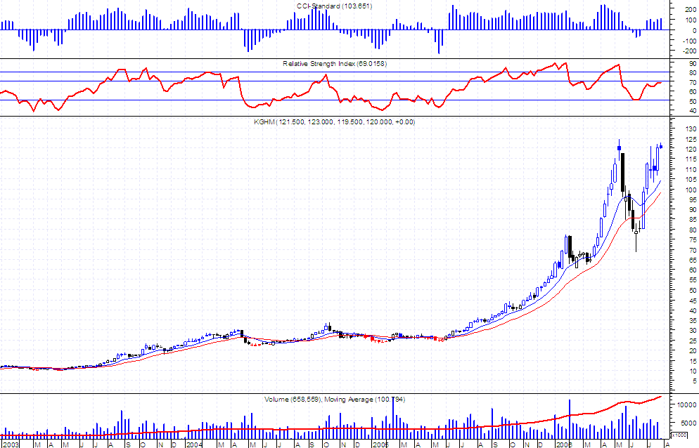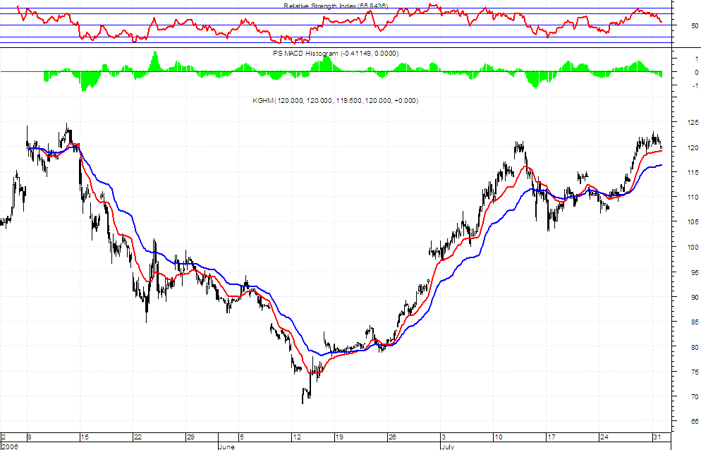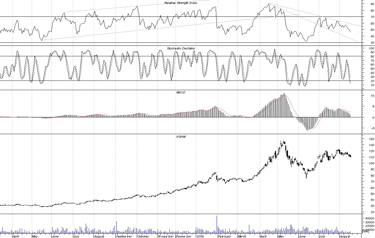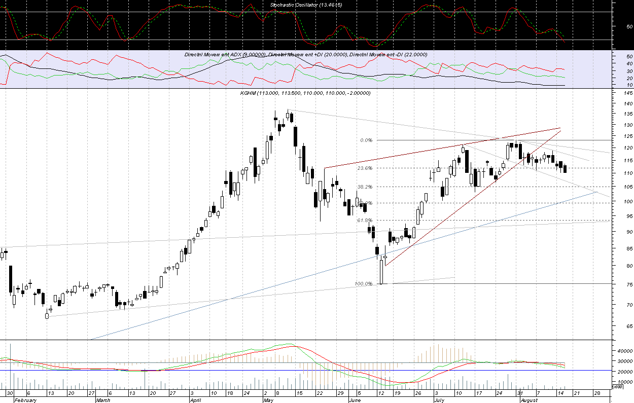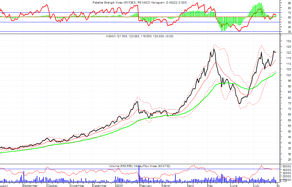 Niedawno wyst?pi?a korekta zatrzymana w okolicy 105 zl i raczej trudno spodziewac siŕ jej pog?ŕbienia. Przebicie szczytu przez kghm hmmm.... to jasny sygna? dla byka......gdzie wtedy bedzie wig20???