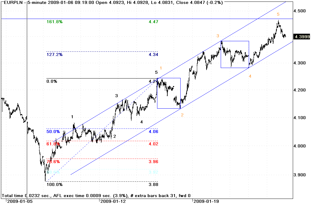 Wyjście dołem powinno skutkować ruchem co najmniej o jeden poziom, choć częściej taki ruch nabiera dynamiki i łamie kilka z linii.