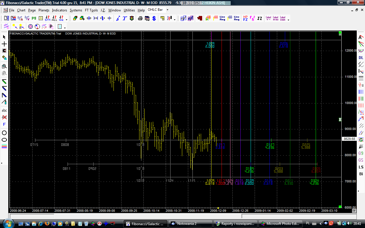 Jako bonus dni docelowe dla DJIA. Najważniejsze są oczywiście te, które są wyznaczone przez dwa lub więcej swingów