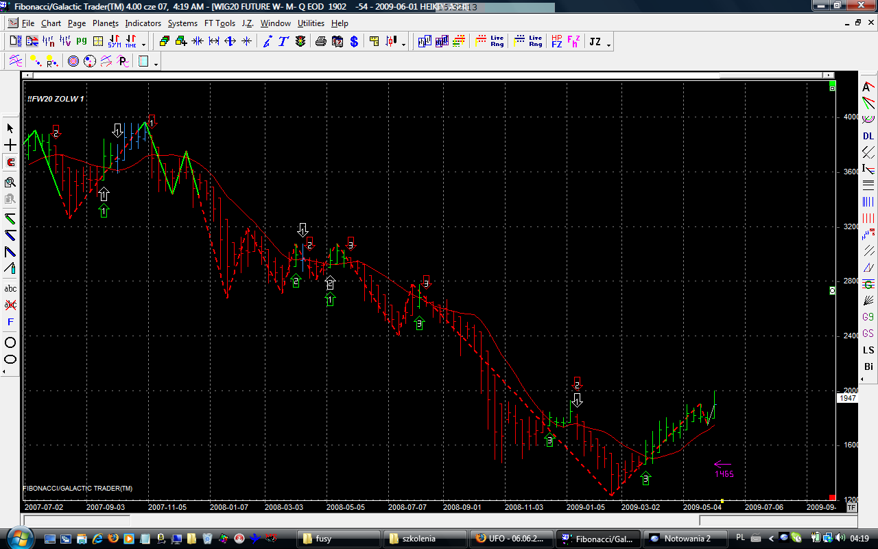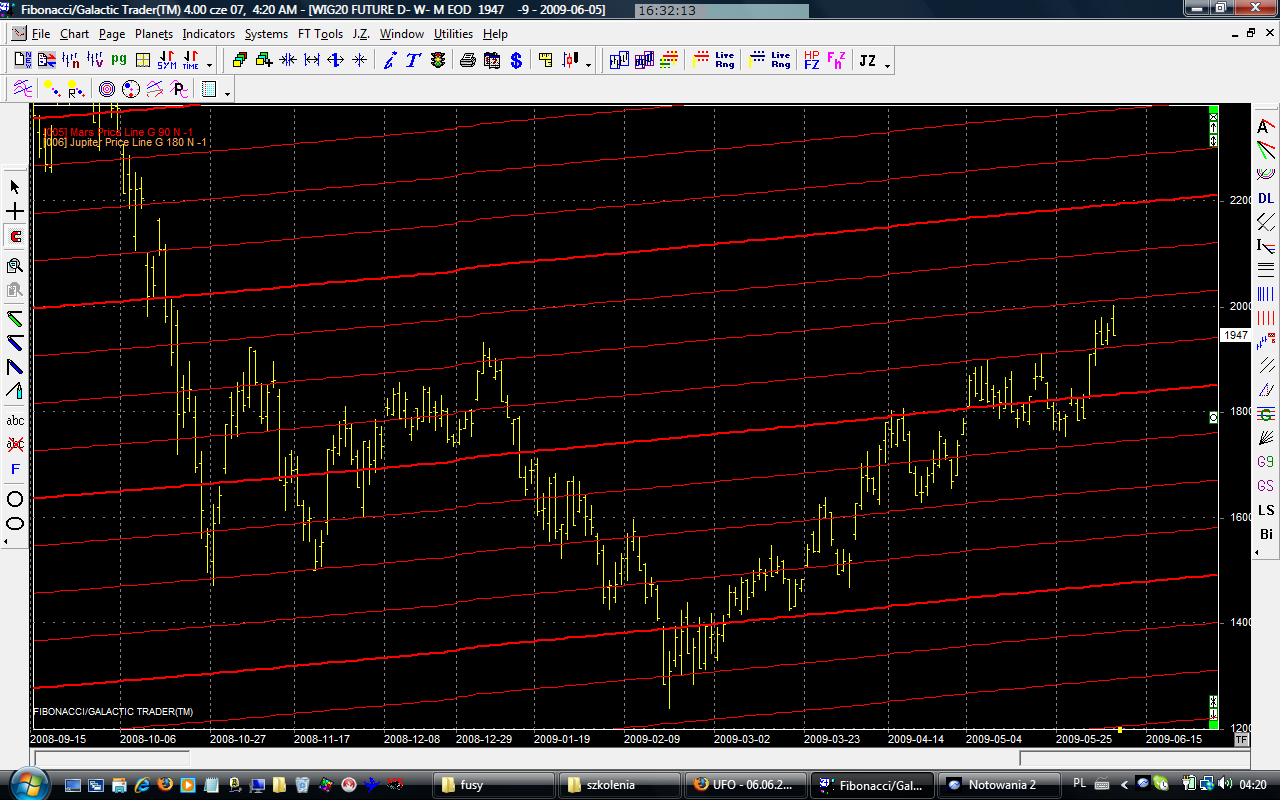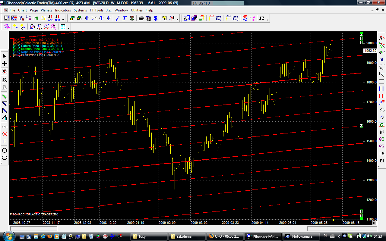 Patrząc tylko z punktu widzenia linii planetarnych sprawa dalszego ruchu w górę jest otwarta ale rzadko zdarza się aby instrument po przeskoczeniu poprzedniej linii sforsował kolejną za pierwszym razem. Spodziewam się więc odejścia co najmniej do poprzedniej linii, która stanowi obecnie wsparcie.