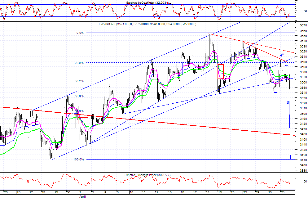 wykres 10 min zaznaczony kanal i klin, na razie odbicie od linii trendu spadkowego