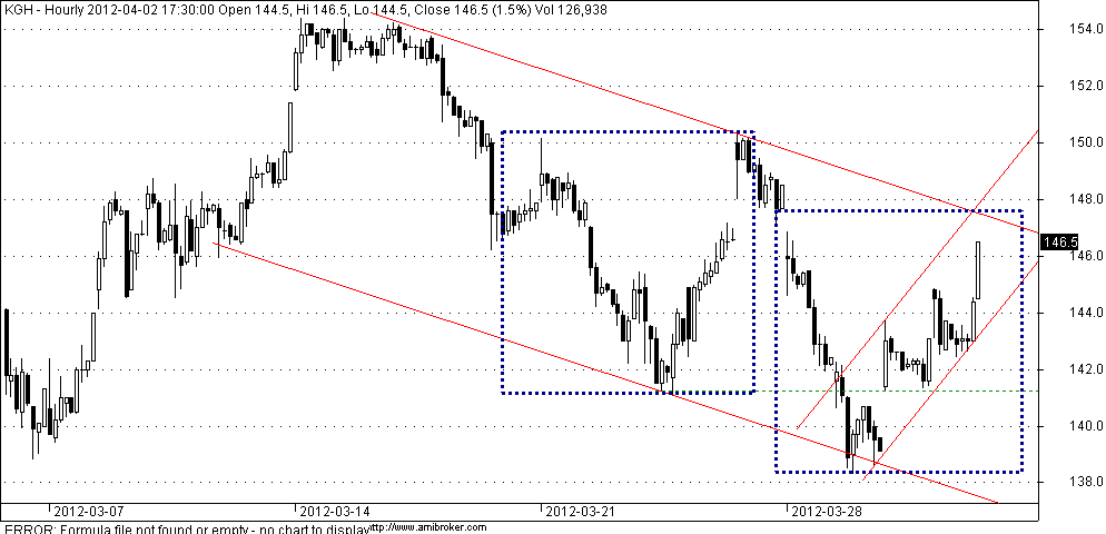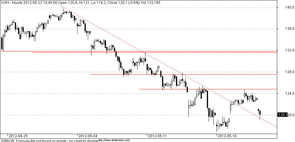 jest moc w KGH'u, dotarł do strefy pierwszych ważnych oporów i może stąd troche cofnąć, ale potem znowu w górę