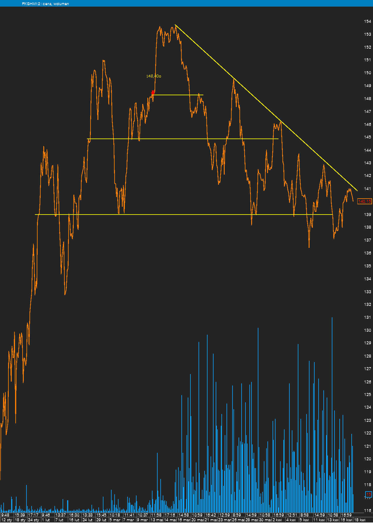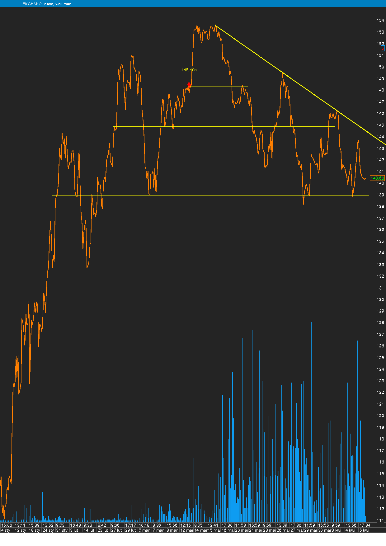 patrząc na cały ruch od dołka na 102 zł najważniejsze wsparcia się bronią, ale przydałby się tu jakiś wolumen, który by zainicjował atak na szczyt