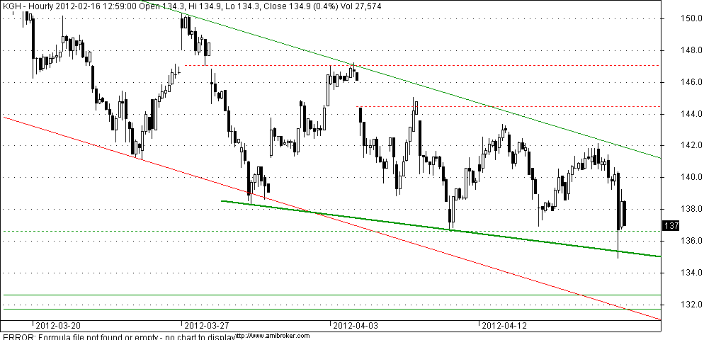 pokonanie linii kanału nie zmieniło trendu, nie było żadnej dynamiki i po zrealizowaniu korekcyjnego abc, minima zostały dziś poprawione, póki nie przejdą 140 zł spadkowo, na plus zamknięcie nad wsparciem 131,7-132,7 zł