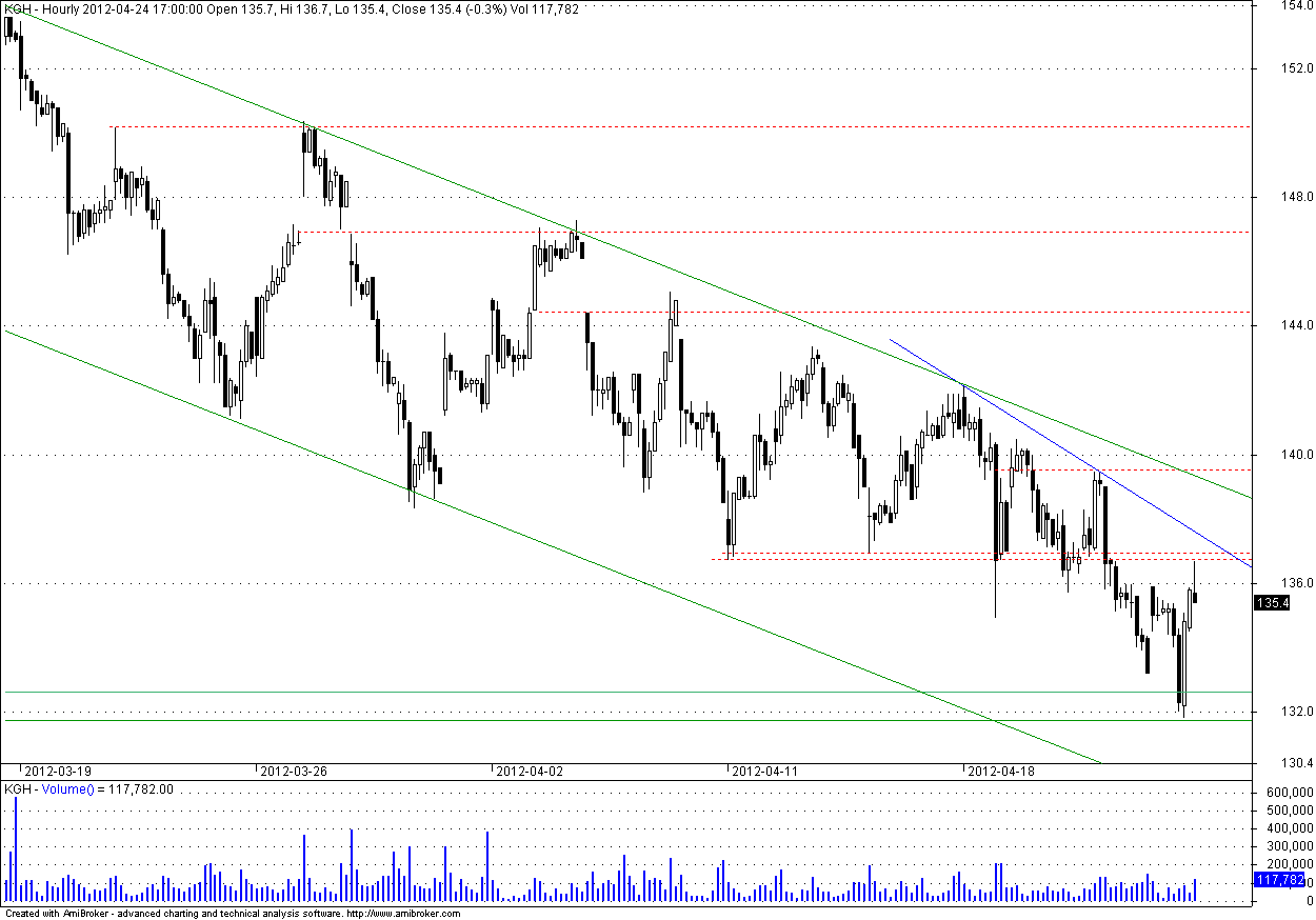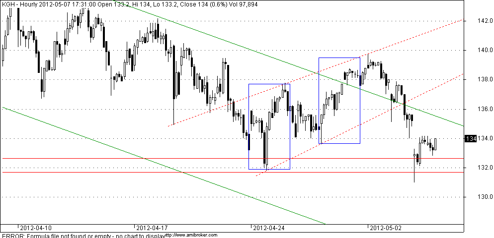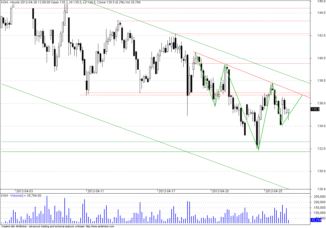dojście do wsparcia i szybkie odbicie, to za mało do zmiany trendu, potrzeba wyjścia na 140, puki co nadal spadkowo
