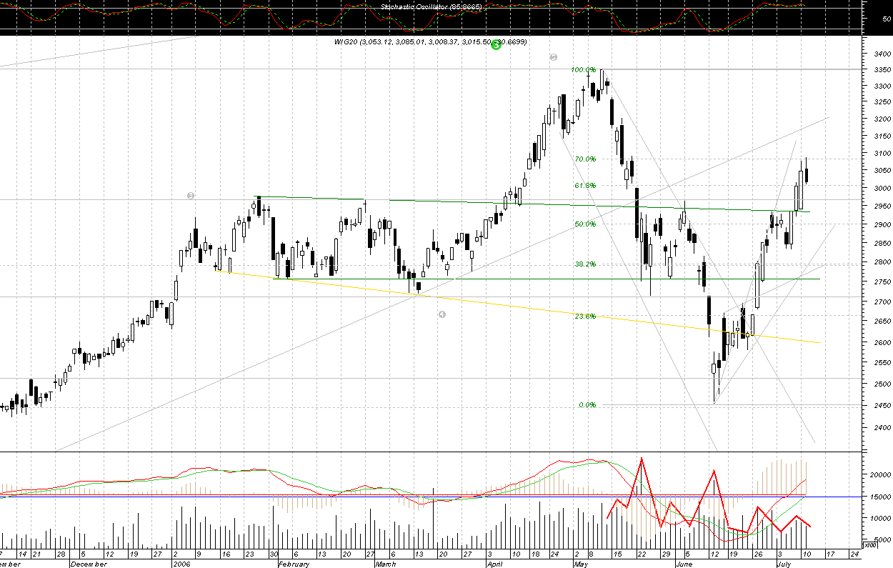 osobiscie oczekuje jeszcze jednej falki w dol na 2996pkt z wolfwave lub okolice 2960pkt fw20kont60min (zniesienie 23,6% calej fali od 2445pkt) a takze wsparcie z maxa 5.06 na 2957pkt