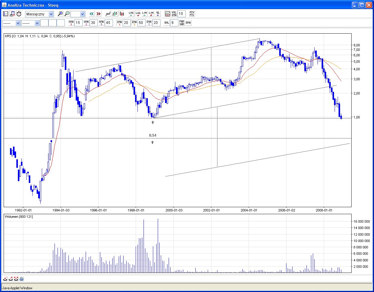Spółka KROSNO ma chyba jakieś poważniejsze problemy. Wykres nie wygląda najlepiej. Czy dojedziemy do okolic 0,54 PLN?