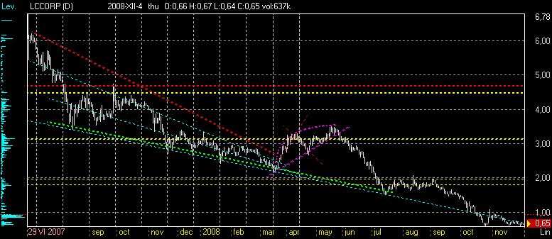 Z LCC moze byc roznie: jest jedno za 1) fundy wlozyly tam gigantyczne pieniadze, z ktorych 50% wyparowalo. Jest jedno przeciw: nie wiadomo czy w 2008 roku oni beda mieli zysk - taki kalendarz inwestycji. Jesli gielda dyskontuje przyszlosc to nie jest to dobra propozycja.