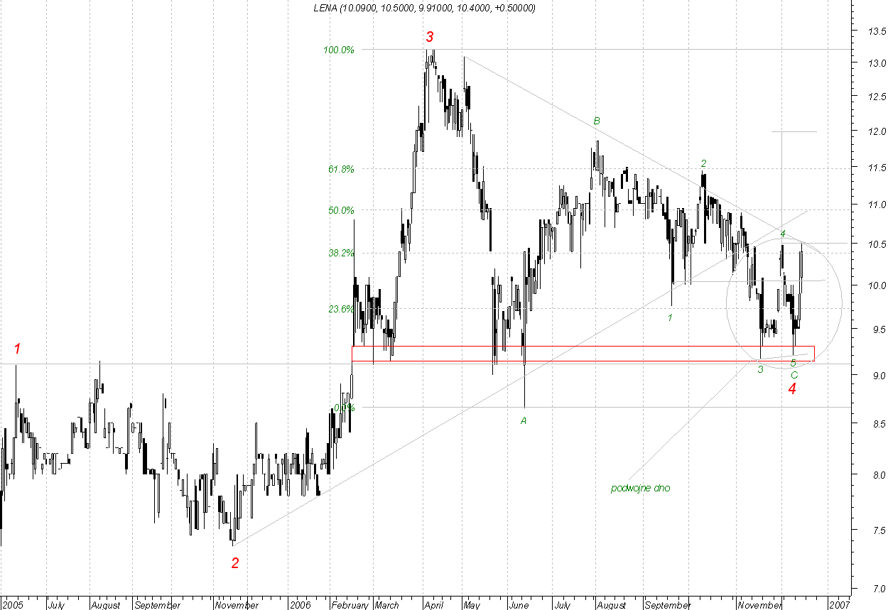 lena przez ostatni miesiac wyrysowala podwojne dno do realizacji. sygnalem kupna bedzie przejscie 10,50. zasieg ok.12zl. za falek wychodzi, ze mamy do zrobienia jeszcze jedna falke up -5, ktora prawdopodobnie zaczynamy.