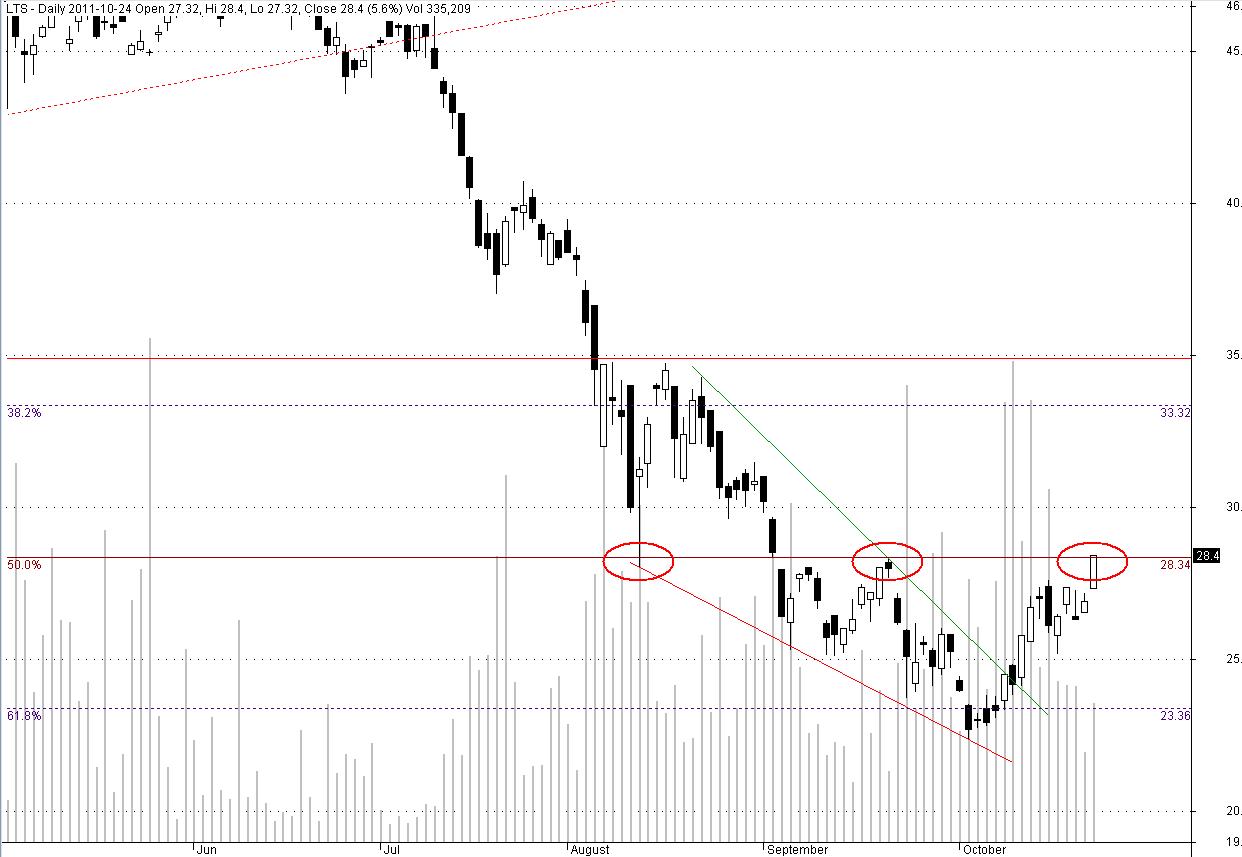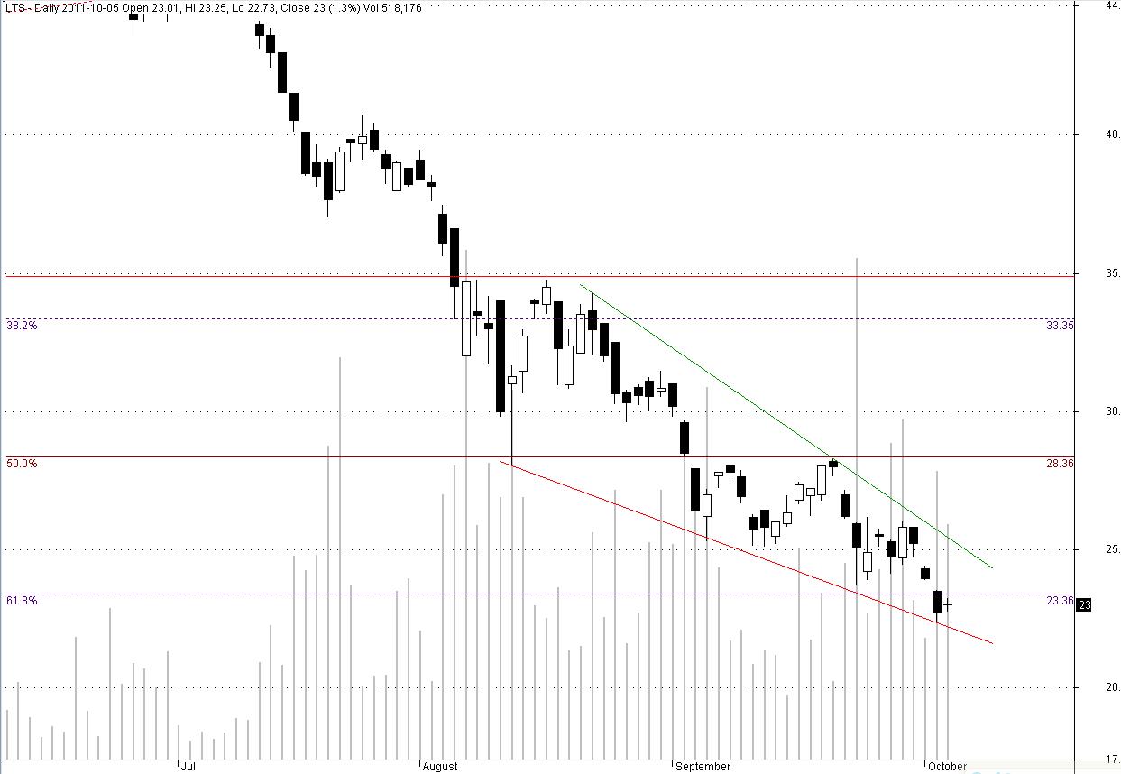 wyjście nad 23,55 zł sygnał kupna dla Harami, wyjście w tej chwili (linia się obniża) nad 25 zł sygnał wg klina,
