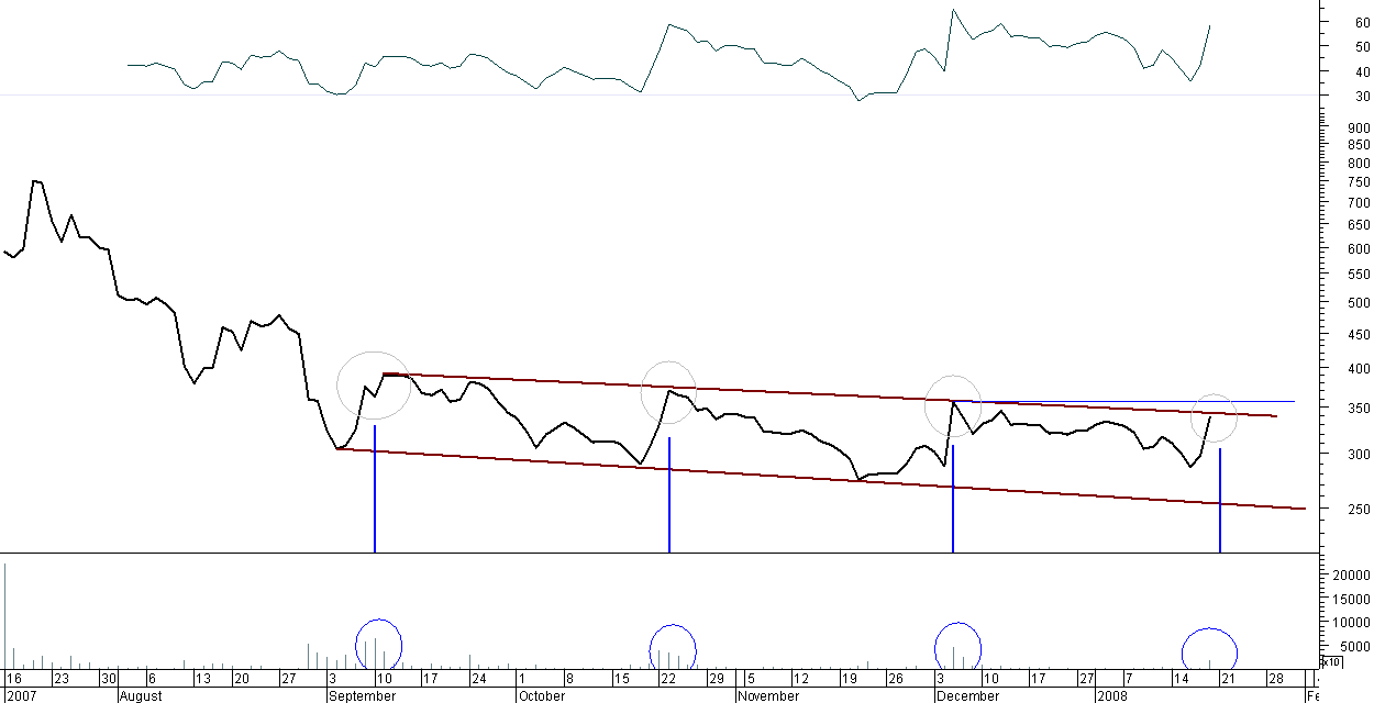 Sygnał kupna na tej spółce pojawi się wraz ze przejściem na stałe strefy 345-360zł a na weekly ok 390zł