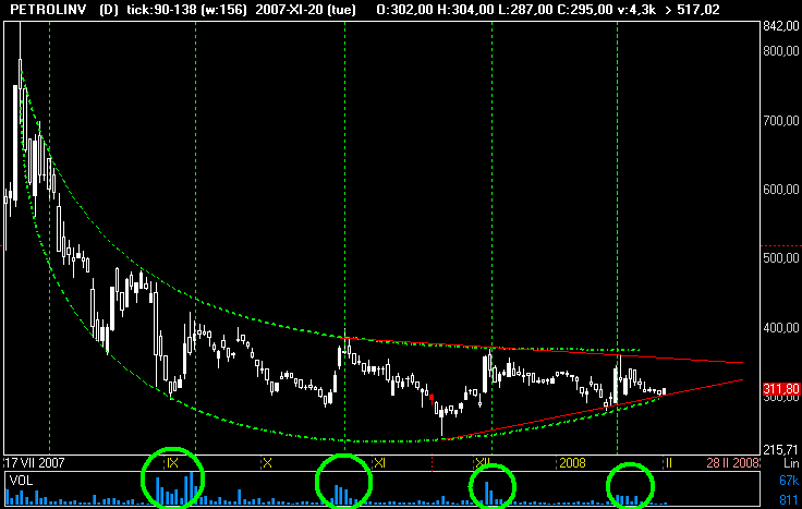 Petro znajduje się w tej chwili w kanale spadkowym i nic nie zapowiada, żeby przeszedł go z kopyta. Sekwencja takich wzrostów, które przecinały średnie zdarzała się już kilka razy. We wrześniu w październiku , pod koniec listopada no i w ostatni piątek. Niestety, za każdym razem nie było konsekwencji i kurs po jakimś czasie wracał na dołki kreśląc kanał spadkowy.