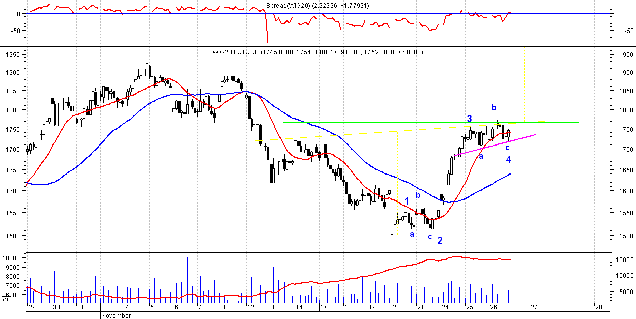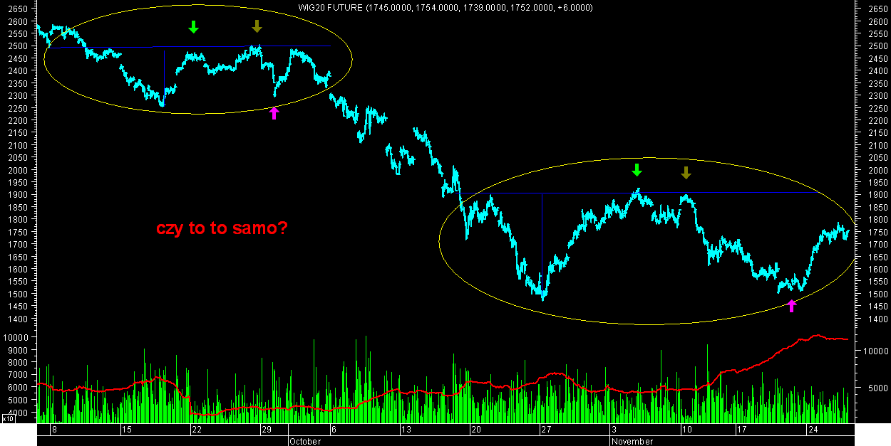 Po niespodziewanym (?) "rally" jakie po wyznaczeniu ostatnich dolkow byki zafundowaly niedzwiedziom, wczoraj ogladalismy raczej stabilizacje na rynkach. Wahania przy szczytowych poziomach wspomnianej fali wzrostowej, to nic niezwyklego, w koncu WIG20 zyskal w tym ruchu ponad 12%, a to nie jest jednak codziennosc szczegolnie... w bessie ;)