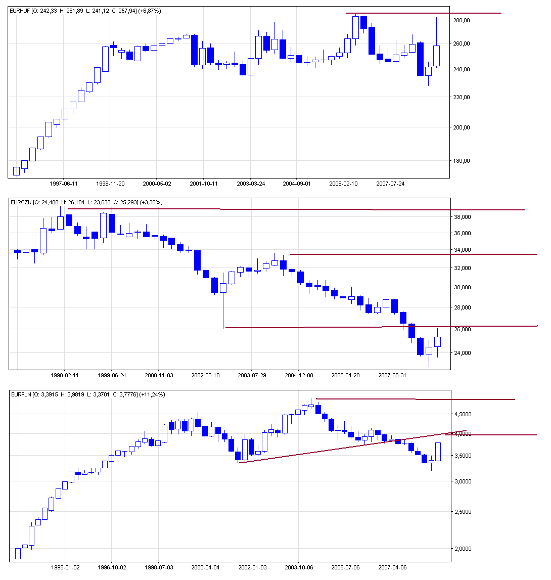 W 2009 roku bedzie duze zagrozenie deflacyjne na swiecie. Nawet ze stopami na zero, realne stopy beda na poziomie +1% moze +2% w USA. Takze ECB i BoE gwaltownie obetna stopy. W tej sytuacji trzymanie wysokich stop w Polsce po prostu zarznie gospodarke.