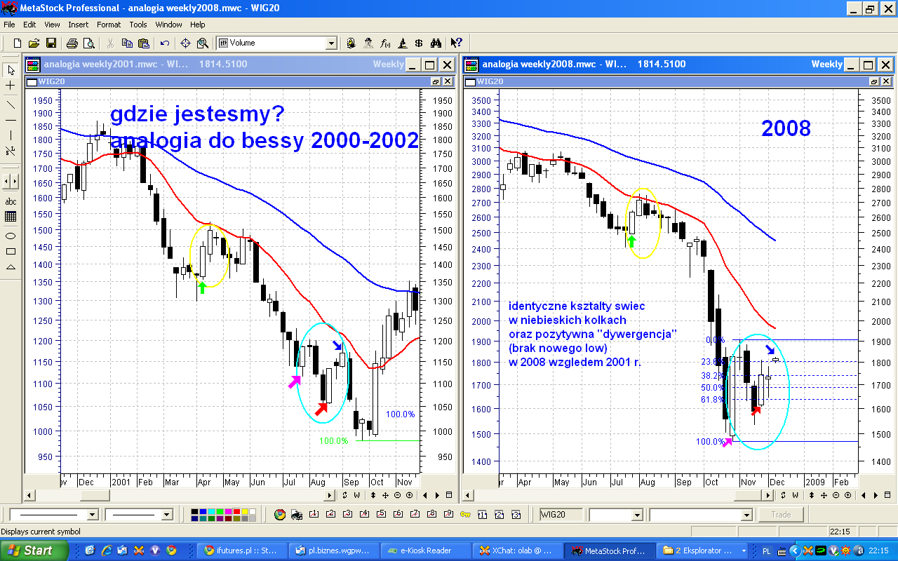 Sytuacja w stosunku do dyskusji w poprzednich 2 tygodniach pozostaje bez wiekszych zmian, a ze czasem nam brakuje chlodnej oceny rynku z dystansu, pozwole sobie zatem przypomniec <a href=http://www.ifutures.pl/viewtopic.php?p=10192#10192>dlugoterminowe spojrzenie na rynki</a> zaprezentowane przez <b>klus</b>a. Pewne pozytywne sygnaly odnotowuje rowniez <b>krezus</b> w sojej <a href=viewtopic.php?t=1445>miedzyrynkowej analizie</a>.