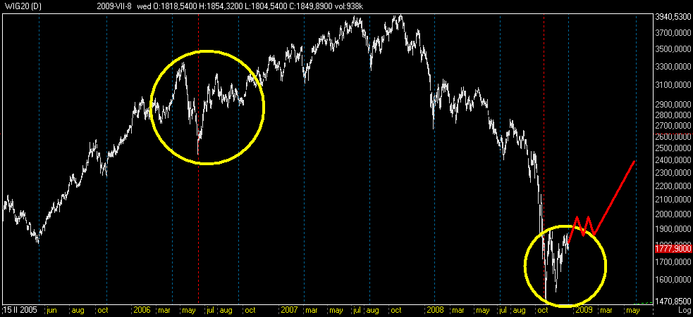 Poniżej przypominam równiez wykres analogii do bessy internetowej wg którego schematu w tym tygodniu mielismy zrobic górkę i powrócić do spadków (analogia weekly).