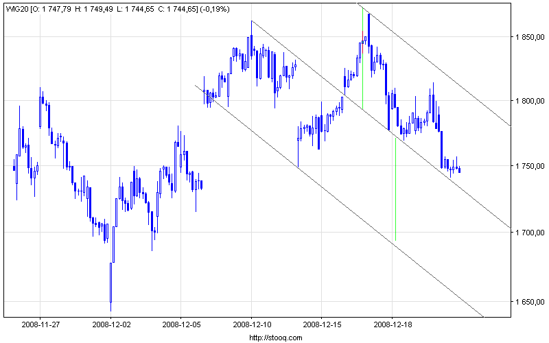 Poprzedni tydzien na WGPW nie przyniosl zadnej zmiany w sytuacji, indeks WIG20 zanotowal zwyzke o blisko 1%, a "duzy WIG" spadek o -0,35%. Utrzymujemy sie zatem w uciazliwym trendzie bocznym ktory rozpoczal sie po oddaleniu cen o blisko 400pkt od wsparcia wyznaczonego przez ostatnie dolki.